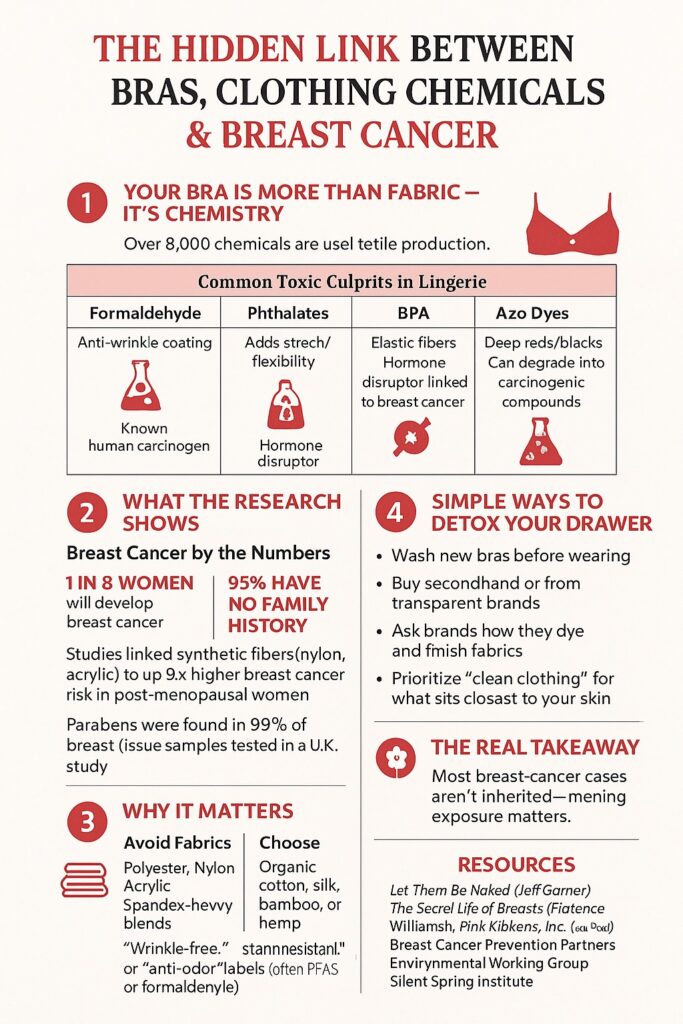 Now, I’m not saying your favorite bra is out to get you. But when you think about tight, synthetic fabrics sitting against your skin all day, especially in areas where your pores open up from heat or sweat, it’s fair to ask: what exactly are we absorbing?